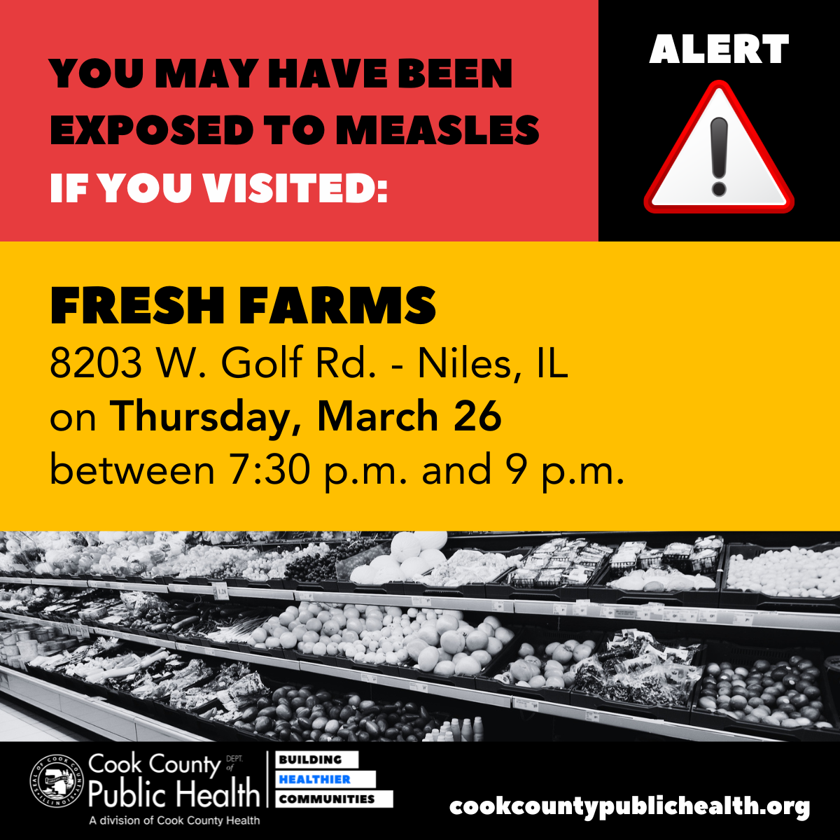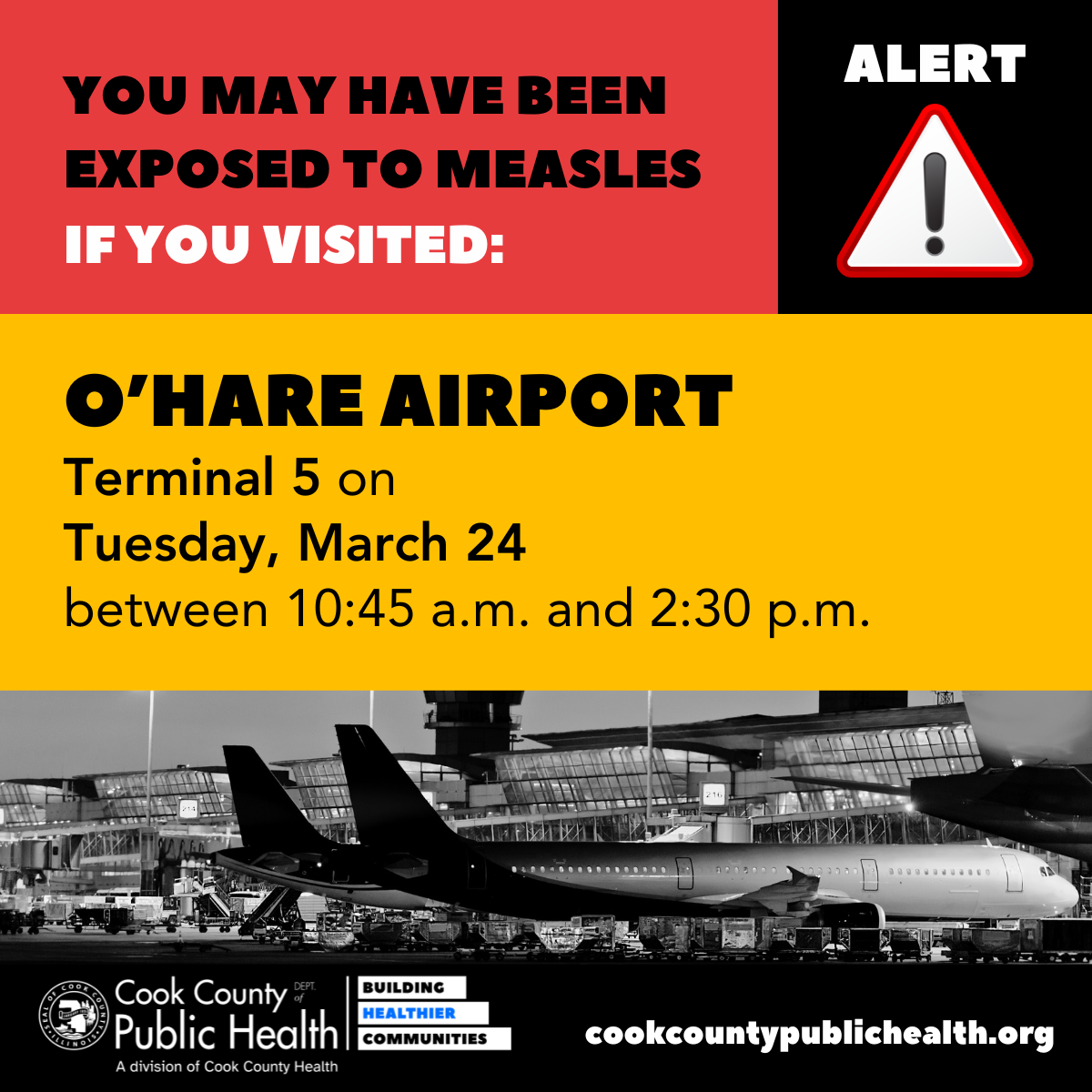 The individual also visited Endeavor Health Immediate Care Center in Mt. Prospect on Friday, March 27, 2026. CCDPH is working with the location to identify and notify all people who may have visited specific areas of the immediate care center.