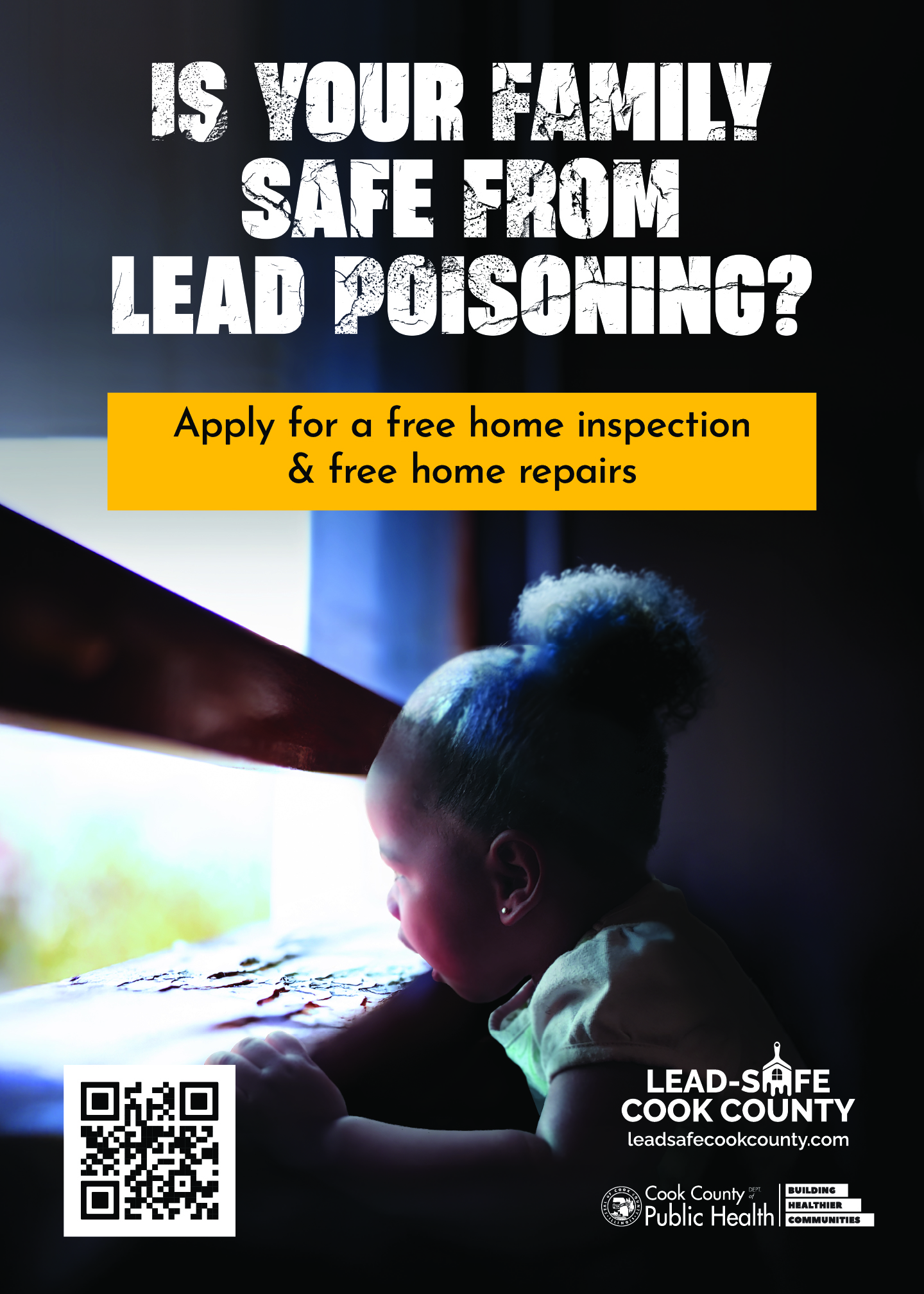 All services are free for homeowners and tenants. With funding from Cook County and the U.S. Department of Housing and Urban Development, CCDPH fixes lead paint hazards in homes in suburban Cook County communities for families that qualify at no cost to the homeowner or tenant.