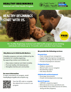 Educational Materials Fact sheet Fact sheet (8.5″x11″)[ENGLISH | SPANISH | POLISH | ARABIC | CHINESE] Palm card Palm cards (5″x7″)[ENGLISH | SPANISH | POLISH | ARABIC | CHINESE] Brochures Tri-fold brochure (8.5″x11″)[ENGLISH | SPANISH | POLISH | ARABIC | CHINESE] Healthy BeginningsHealthy Beginnings Program Educational Materials Maternal and Child Health Resources Updated December 8, 2025, 3:40 PM